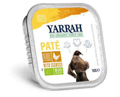 Pate para perros con pollo y algas tarrina bio 150g Yarrah