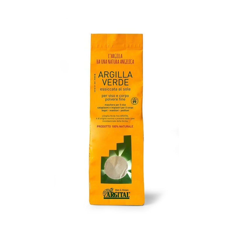 La arcilla verde fina de Argital es un producto excepcional, procedente de una cantera ubicada en el hermoso extremo sur de Sicilia. Este lugar privilegiado, caracterizado por su limpieza, sol brillante y brisas del mar Mediterráneo, proporciona una cosmética natural de la más alta calidad. La arcilla verde es rica en sales minerales y oligoelementos naturales, que la convierten en un aliado perfecto para el cuidado de la piel.
